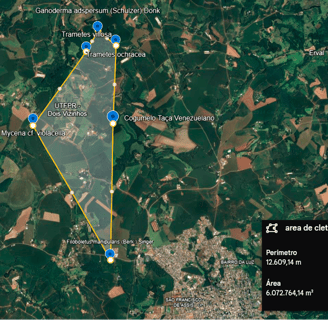 O estudo focou em macrofungos do filo Basidiomycota coletados na região sudoeste do Paraná, em um raio de 100 km da Universidade Tecnológica Federal do Paraná, campus Dois Vizinhos (UTFPR-DV). Esta região apresenta clima subtropical úmido, sem estação seca, com vegetação que inclui floresta ombrófila mista e floresta estacional semidecidual, destacando a presença de Araucaria angustifolia (pinheiro-do-paraná).